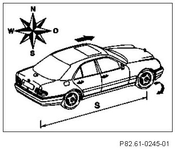 Dead reckoning is accomplished continuously by the E-CALL control module (A35/8) with "circuit 15R: ON". The current vehicle position is calculated from the mileage traveled under consideration of the vehicle alignment and direction of motion.