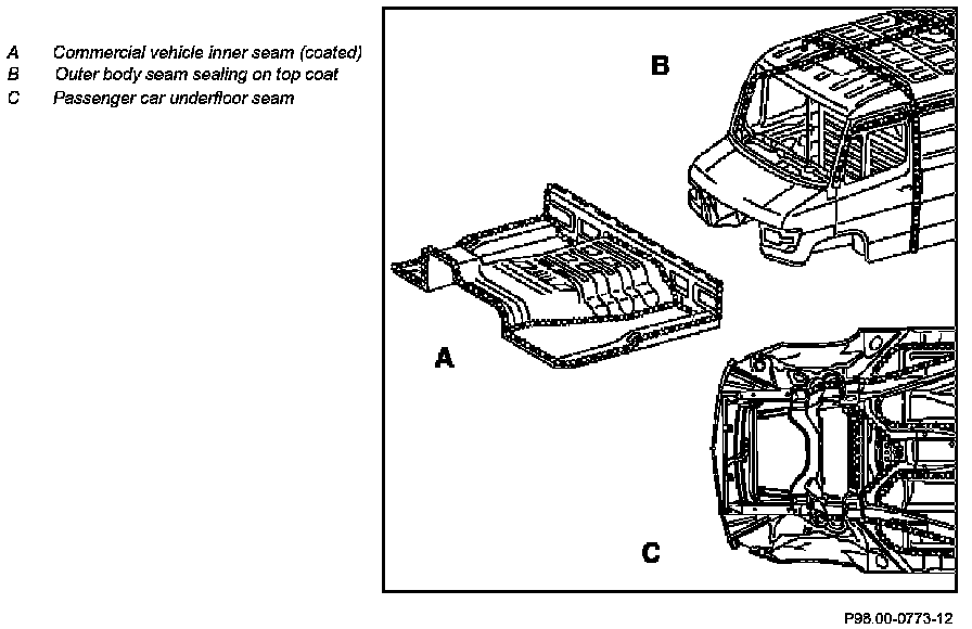 PVC and PUR body seam sealing materials on overlaps, folds, in gaps and joints serve as sealants and corrosion protection and produce a visually smooth surface.