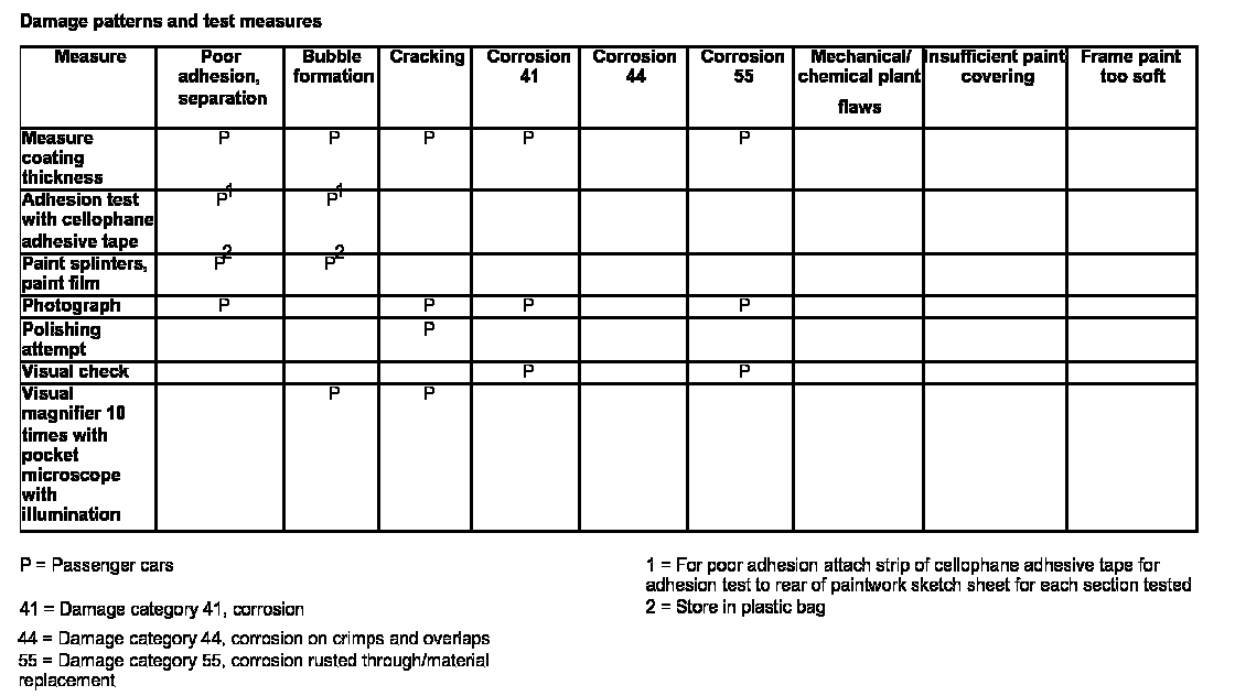 When evaluating the damage patterns proceed according to the following table. All test results evaluated must be entered in the paintwork sketch sheet!
