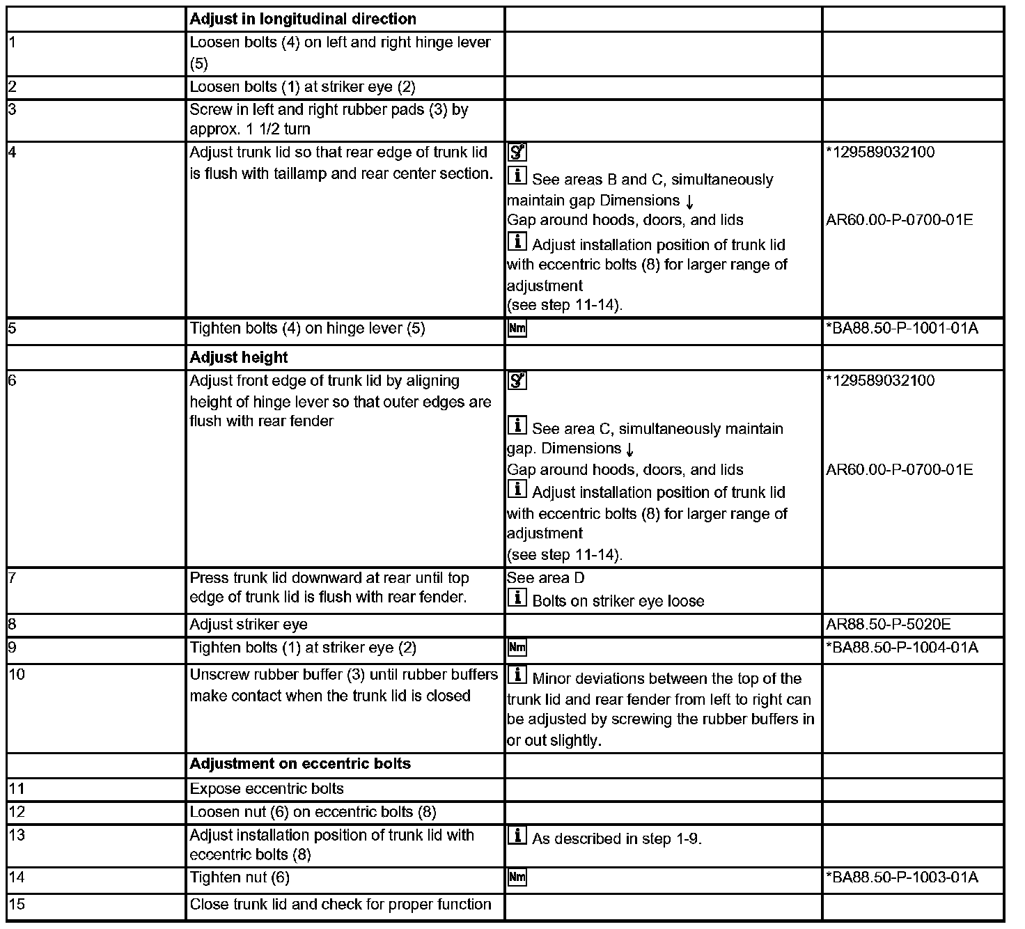 Test And Adjustment Values, Gap Dimensions At Hoods, Doors And Covers: