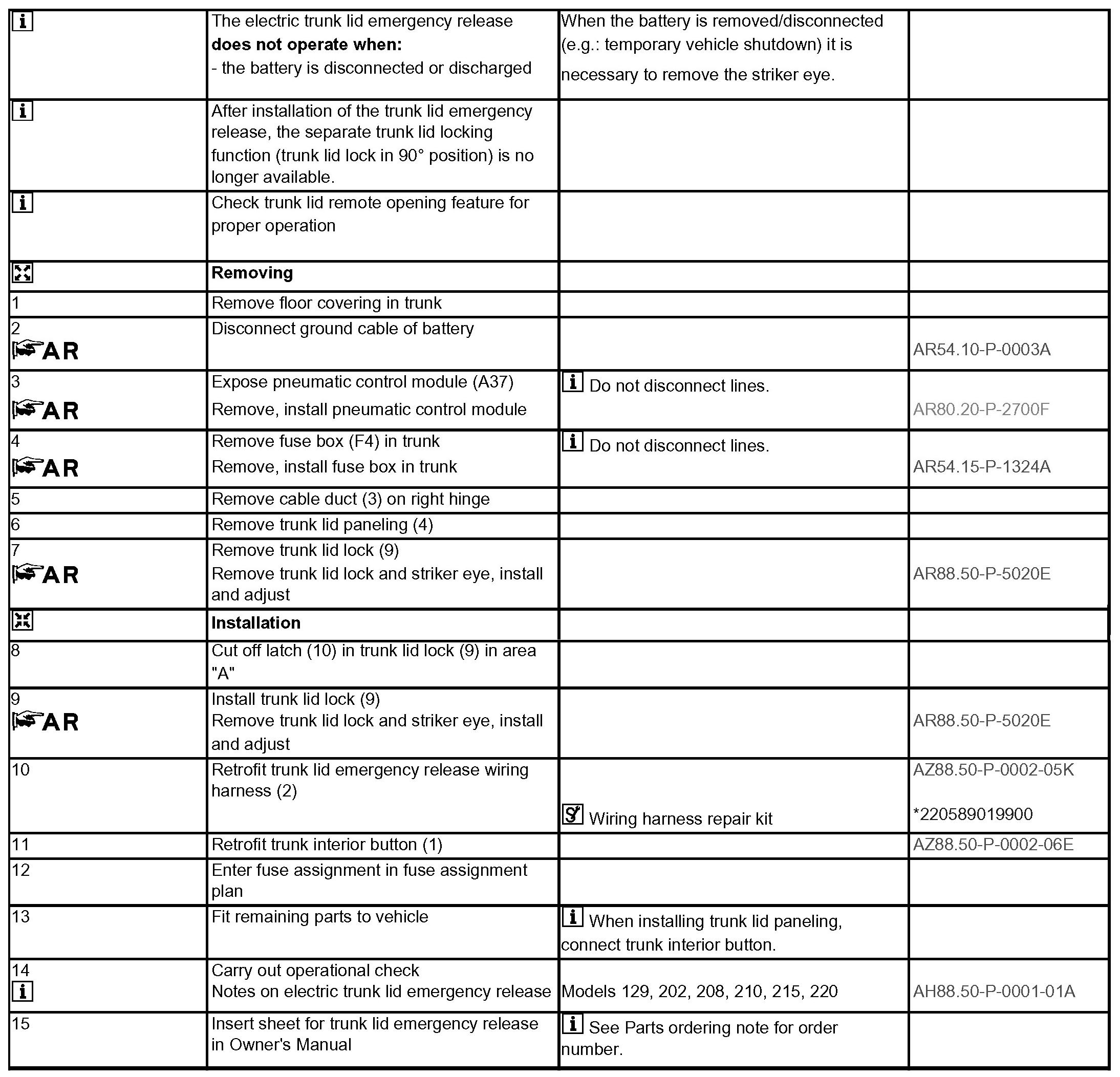 AZ88.50-P-0002K Retrofitting Trunk Lid Emergency Release