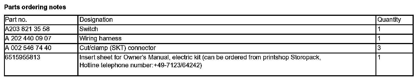 Parts Ordering Notes: