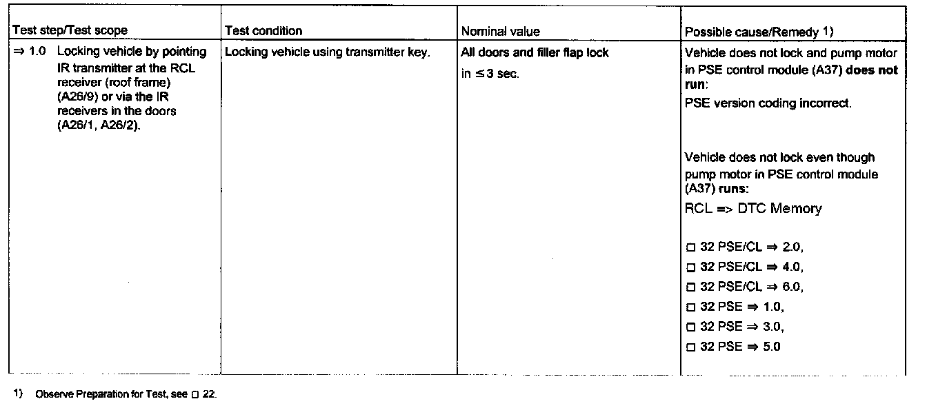 Diagnosis - Function Test (Central Locking)
