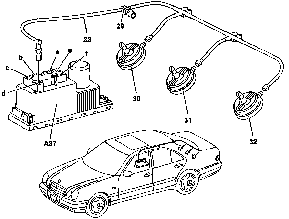 b Pneumatic connection, driver-side door
