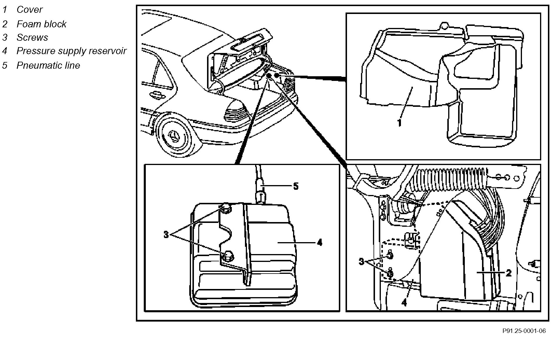 AR91.25-P-1650E Removing And Installing Pressure Supply Reservoir For Multi-contour Backrest