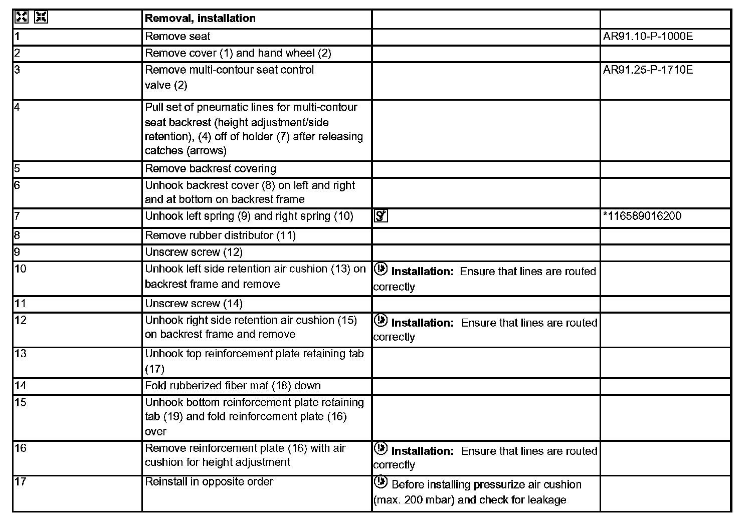 AR91.25-P-1740E Removing And Installing Air Cushions In Multi-contour Backrest