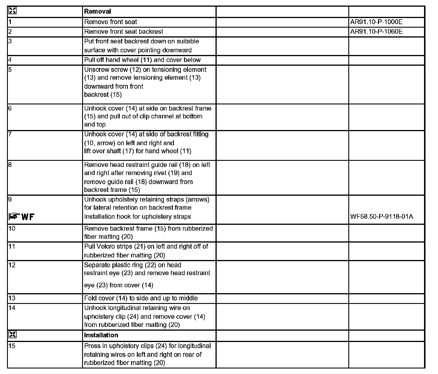 AR91.18-P-1820E Remove/Install Cover on Front Seat Backrest