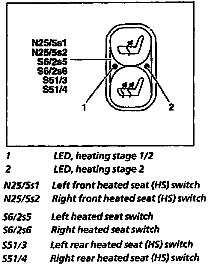 The heated seat can be switched on and off with the heated seat switch. During heating operation, it is possible to switch back and forth between the two heating stages with the switch.