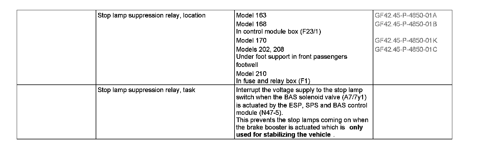 GF42.45-P-4850A stop lamp suppression relay arrangement