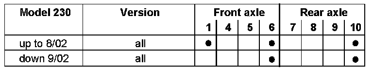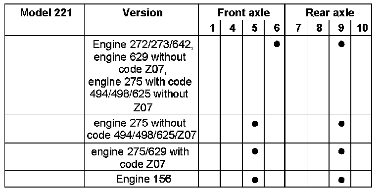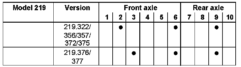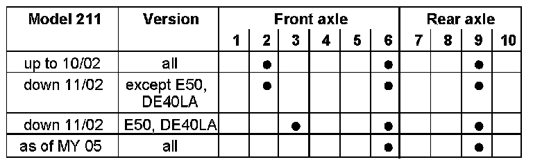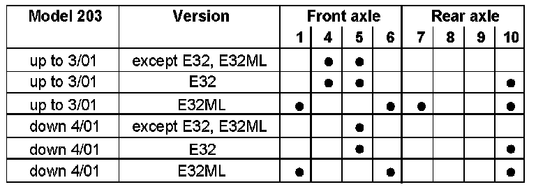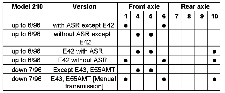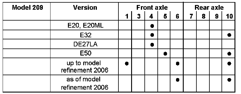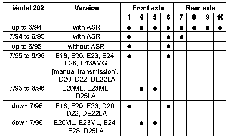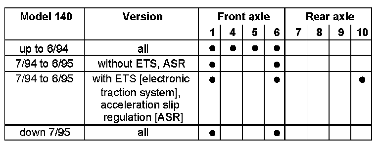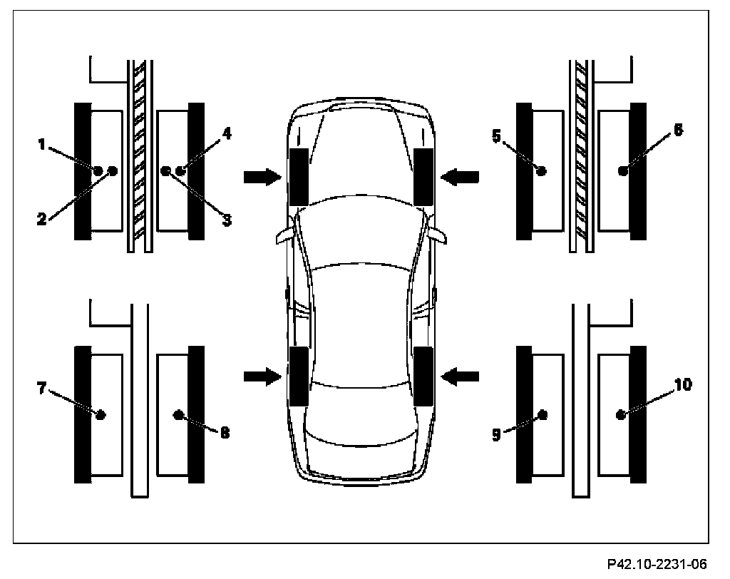Vehicles with ETS, ESP or ASR have contact sensors for the brake lining wear indicator.