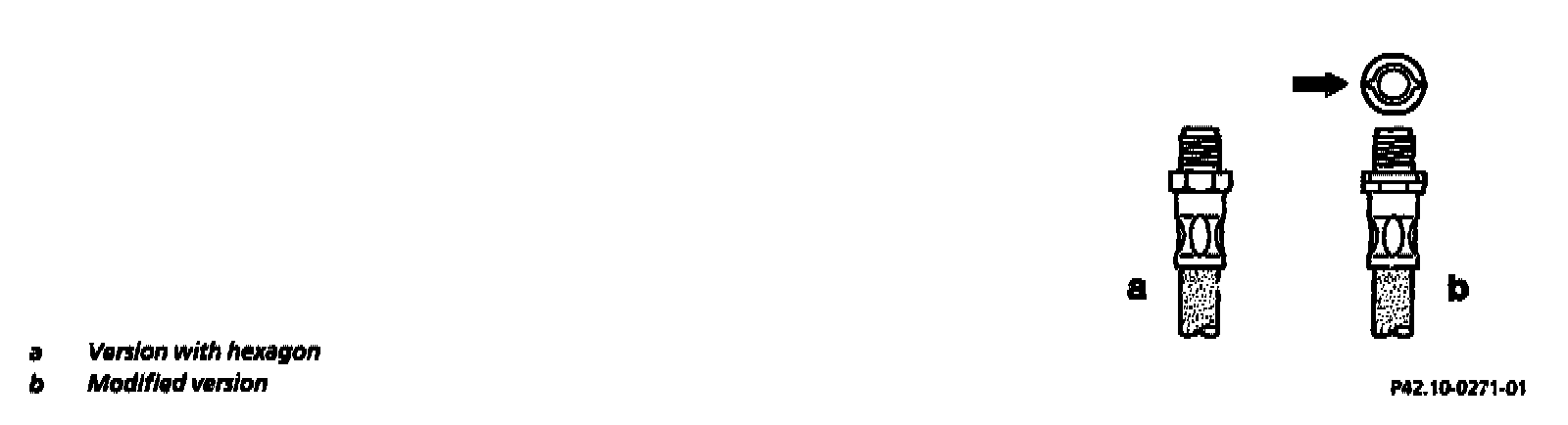 The hexagon on the connection of the brake hose on the brake pipe is not used anymore.