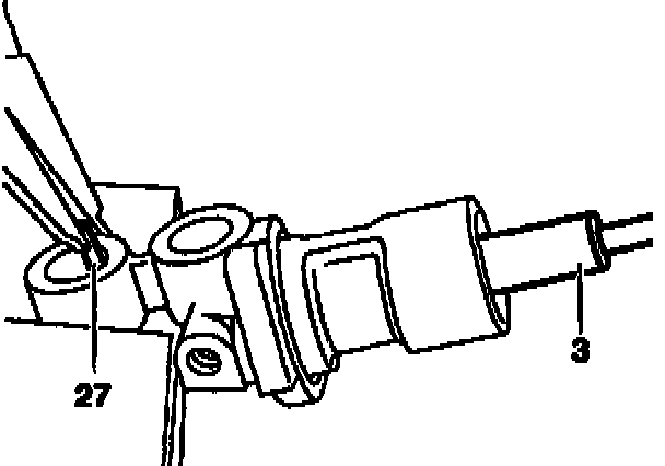 1. Slightly press in piston (3) using a suitable alignment tool and withdraw cylindrical pin (27) using suitable pliers.
