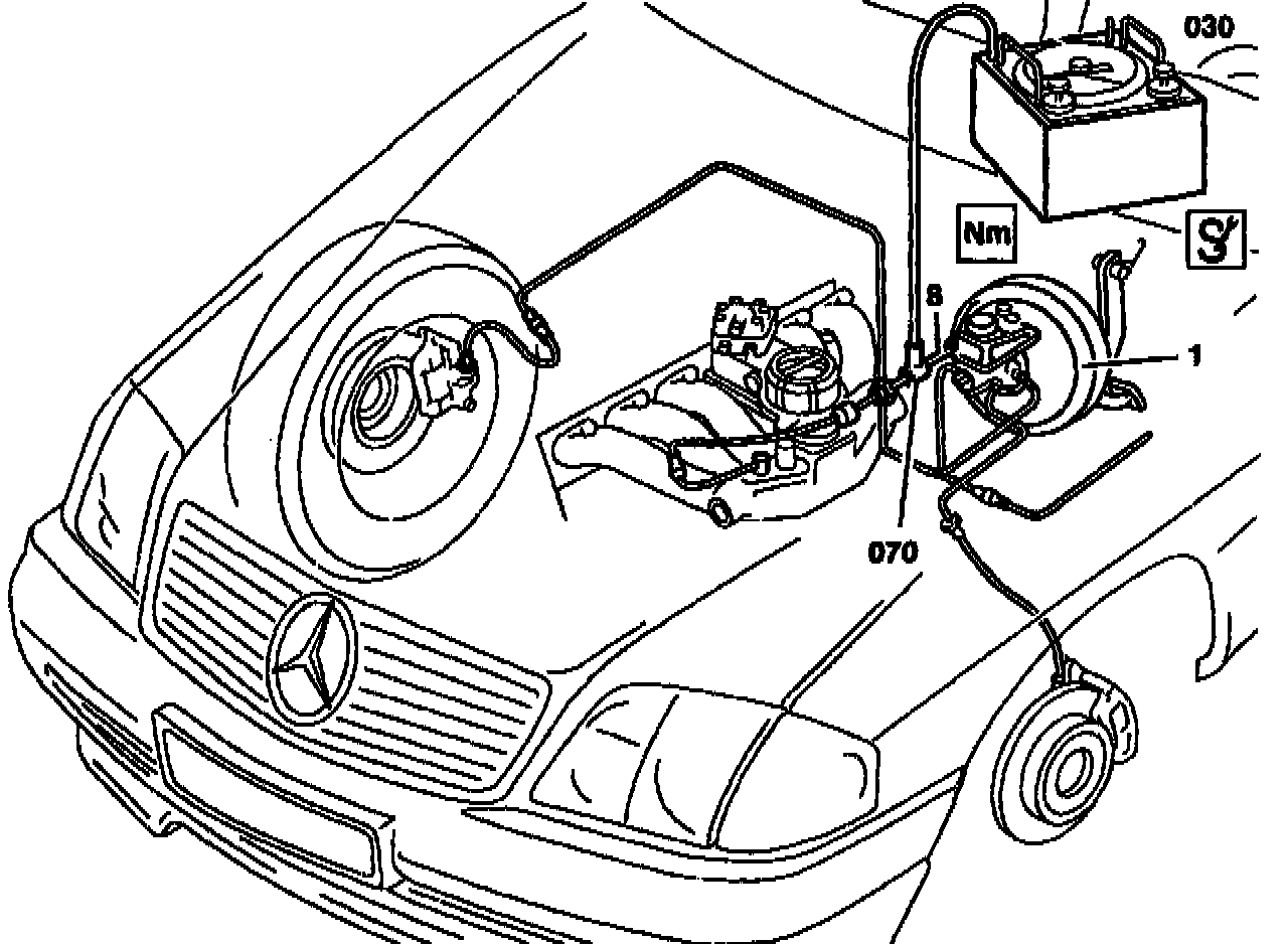 2. Connect vacuum tester (030) to brake booster as follows: