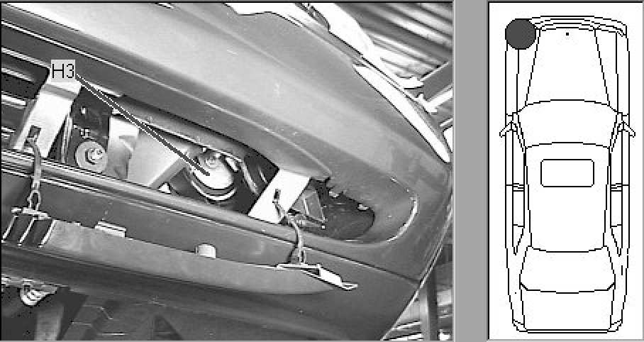Left front, behind bumper