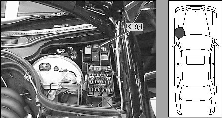 Left component compartment (CDN), in fuse and relay box
