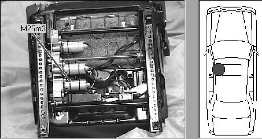 Beneath driver's seat (looking at bottom of seat)