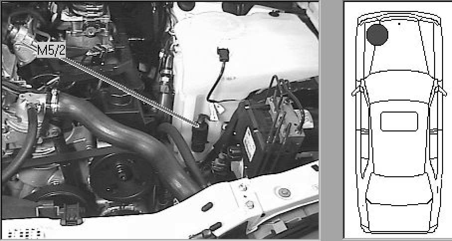 Engine compartment, front of washer reservoir