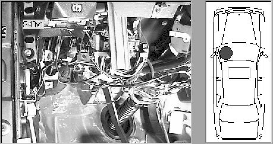 Vehicle interior, beneath dash, to left of steering column