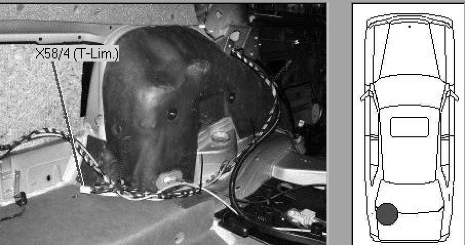 Trunk, left, behind wheel house