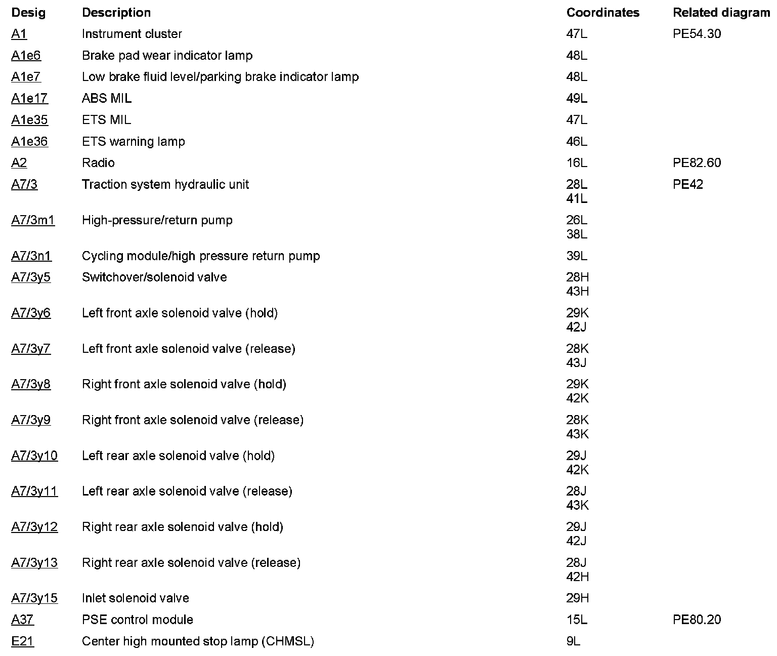 Component Description/Coordinates, A1 To E21: