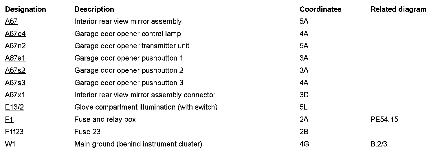 Component Description/Coordinates, A67 To W1: