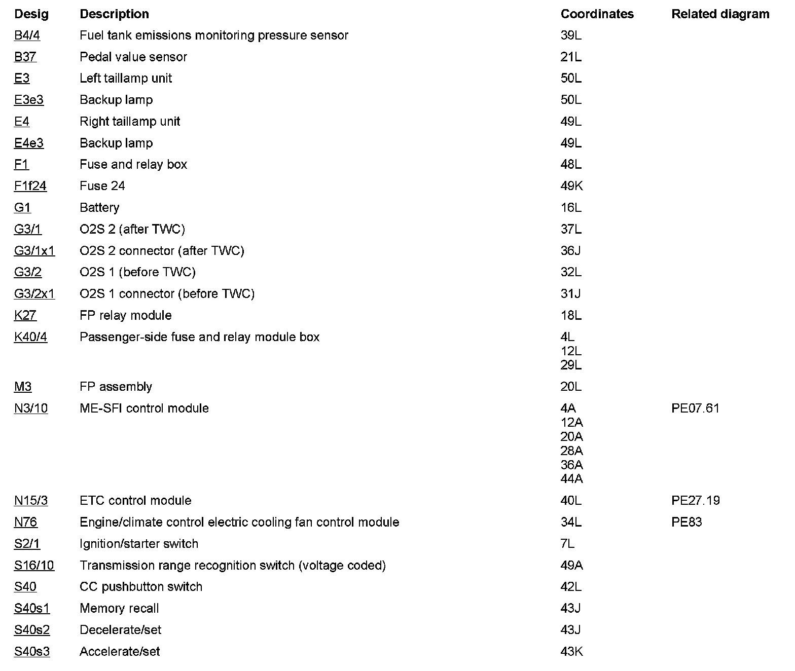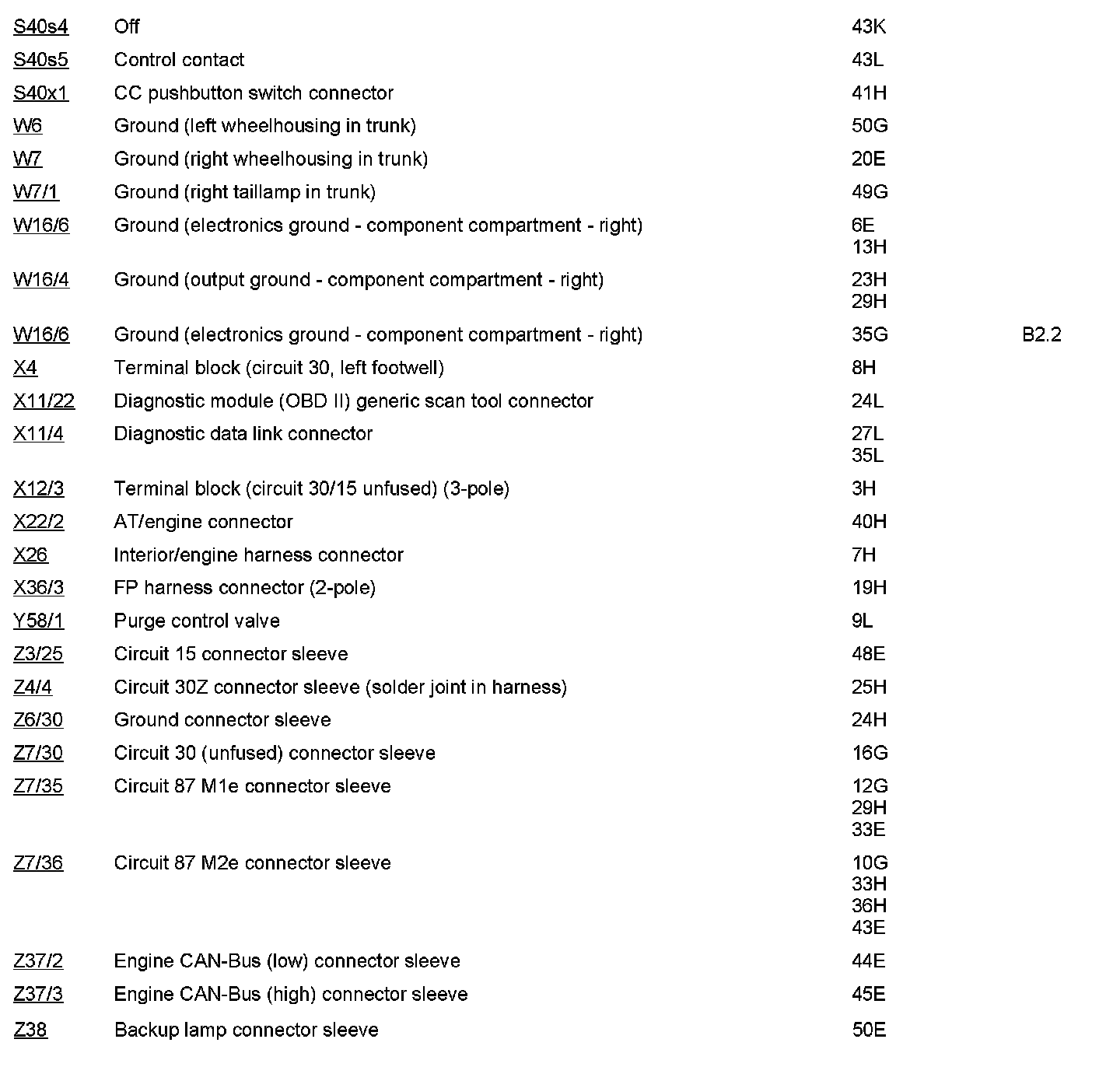 Component Description/Coordinates, S40s4 To Z38: