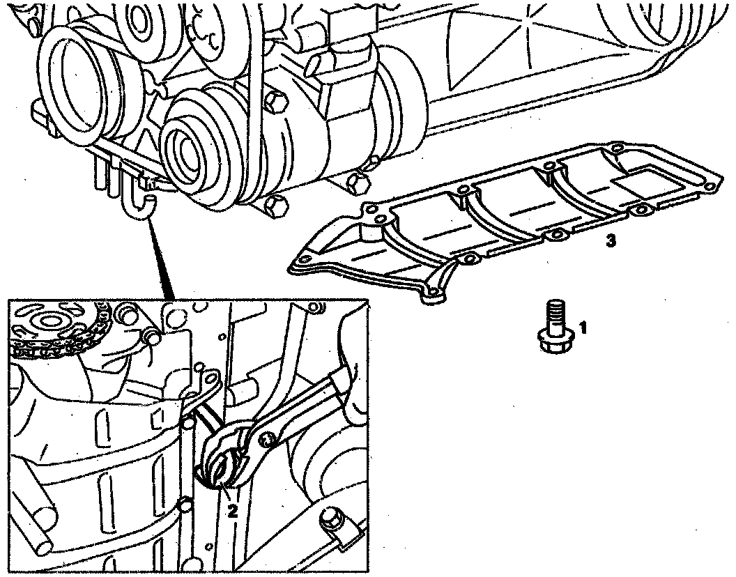 2. Unbolt oil deflector plate (3), remove.
