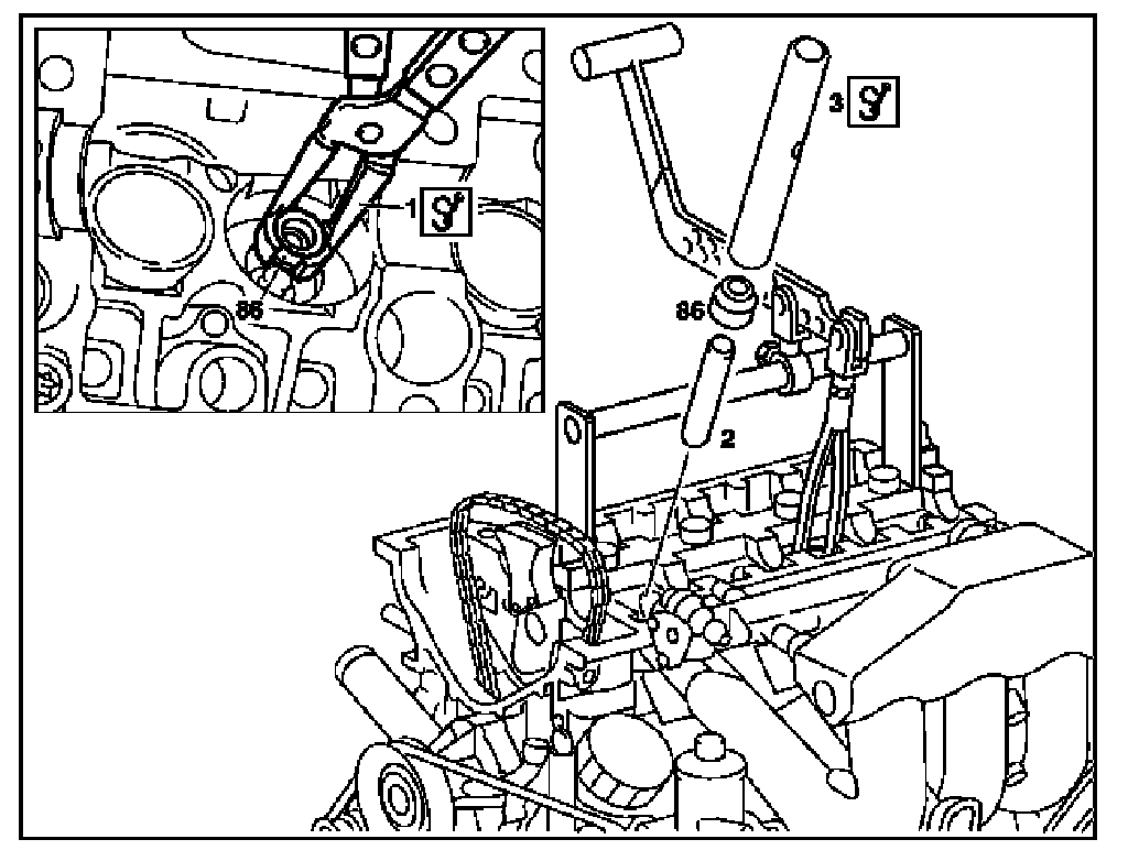1 Detach valve stem seal (86) using pliers (1).