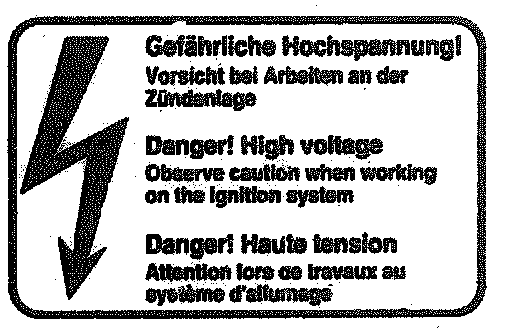 Do not touch parts which conduct high voltages. Persons who have been fitted with electronic implants (e.g. heart pacemakers) must not carry out any work on the ignition system.