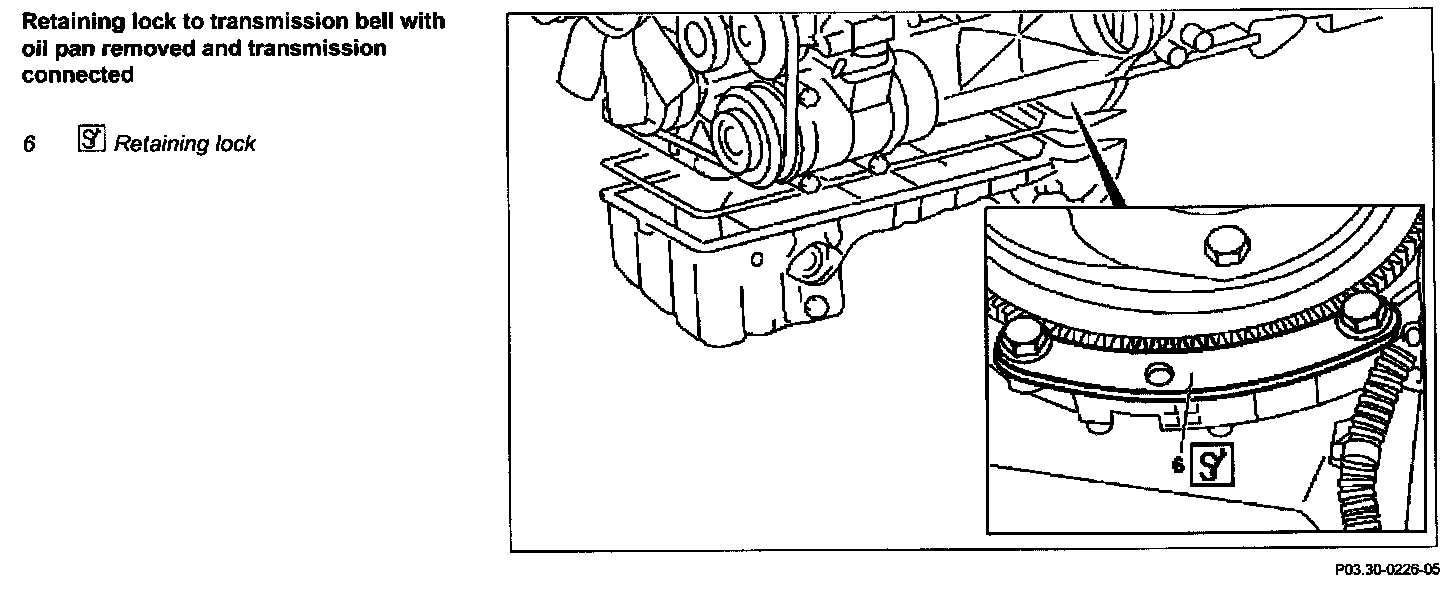 Retaining Lock To Transmission Bell With Oil Pan Removed And Transmission Connected: