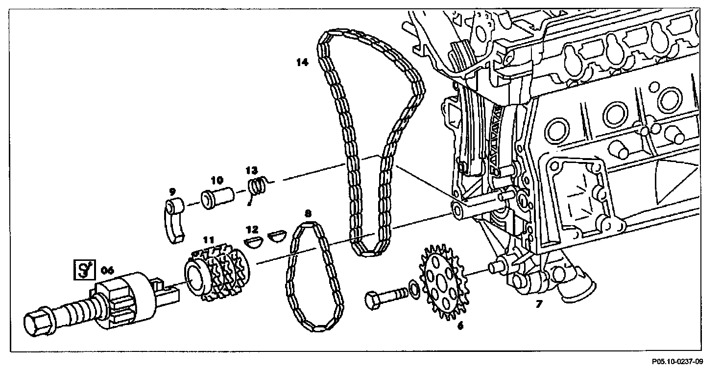 - As of 01/95 a rubber impregnated crankshaft sprocket with tooth offset is installed