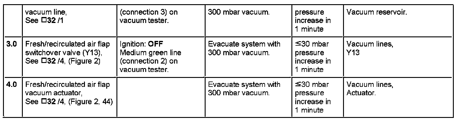 A. Pneumatic Test: Vacuum distribution block, Vacuum Reservoir, Fresh/recirculated Air flap Switchover Valve (Y13)