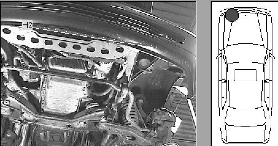 Beneath vehicle, behind bumper (left side shown, a second horn is on the right side)