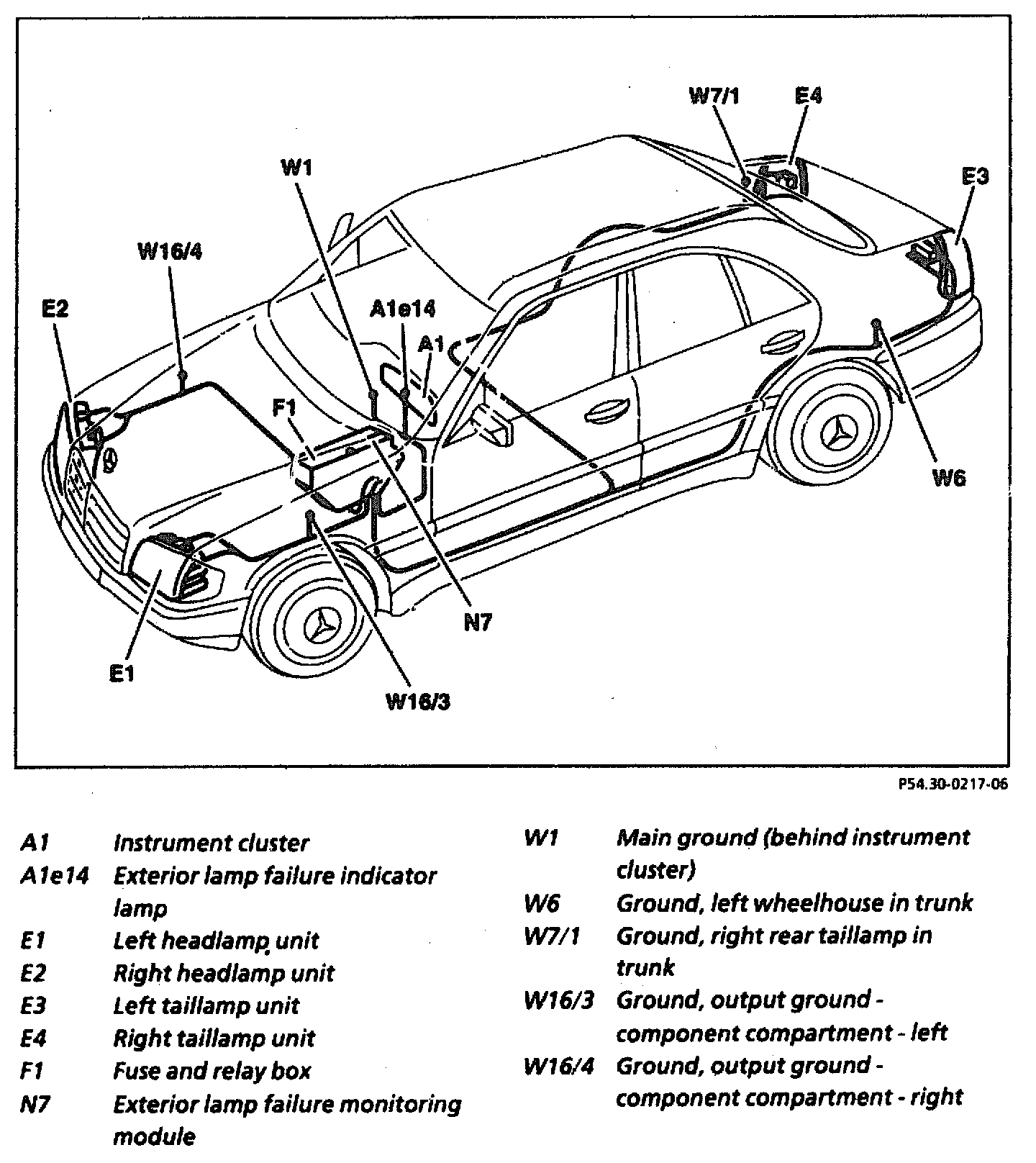 The figure shows the routing of the wires in the model 202 sedan. The schematic for the wire routing and location of the components is also applicable for the T-model.