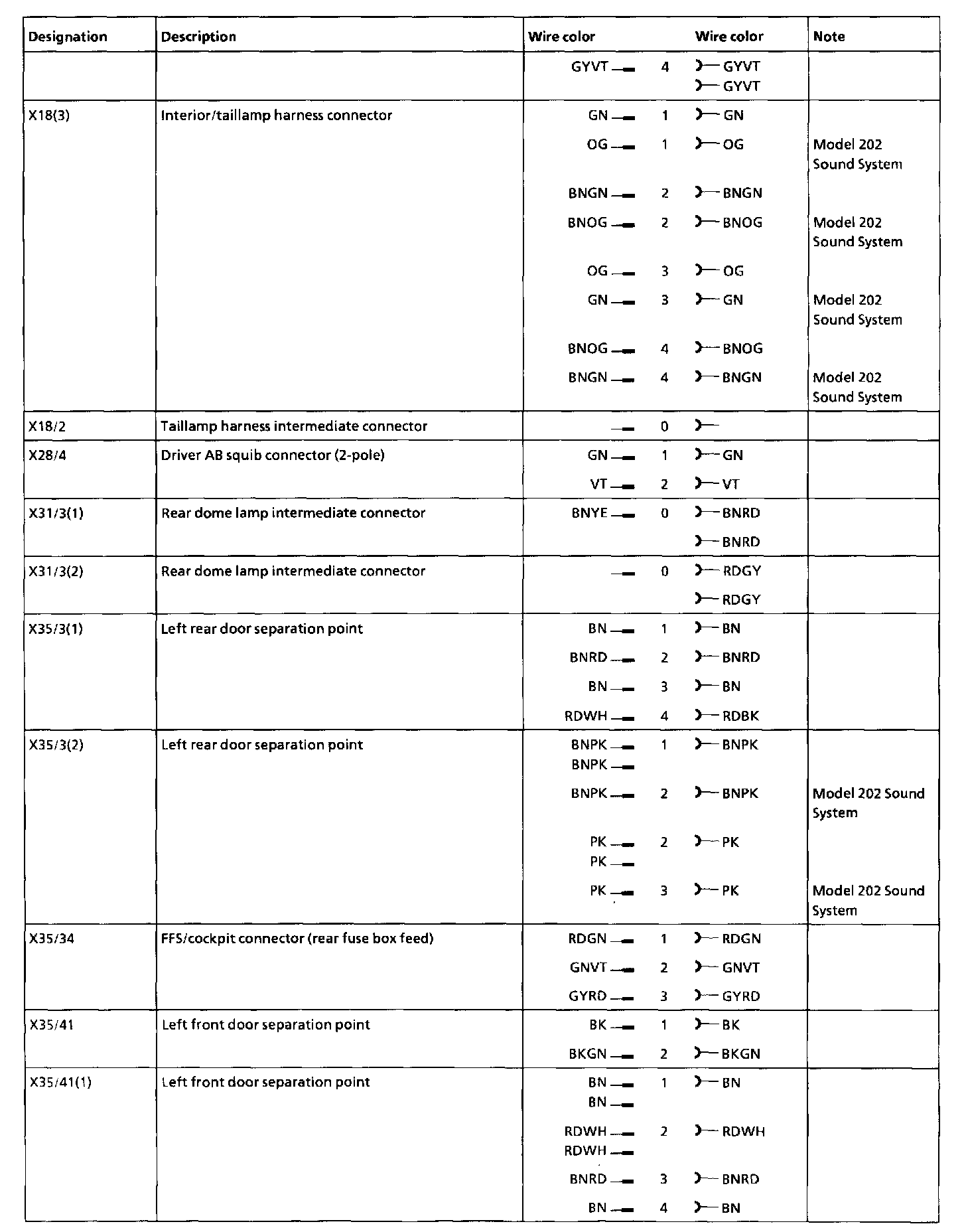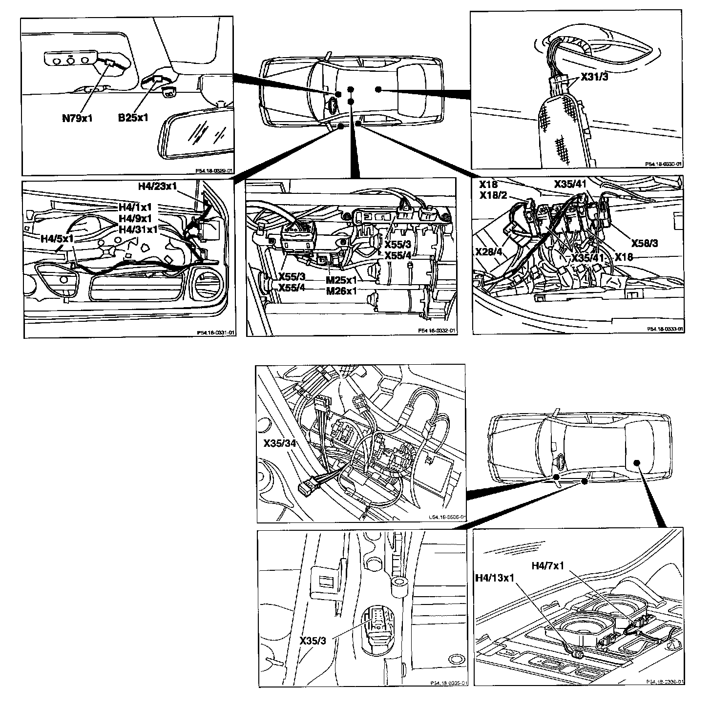 Arrangement and assignment of the wiring and plug connectors, interior compartment (left)