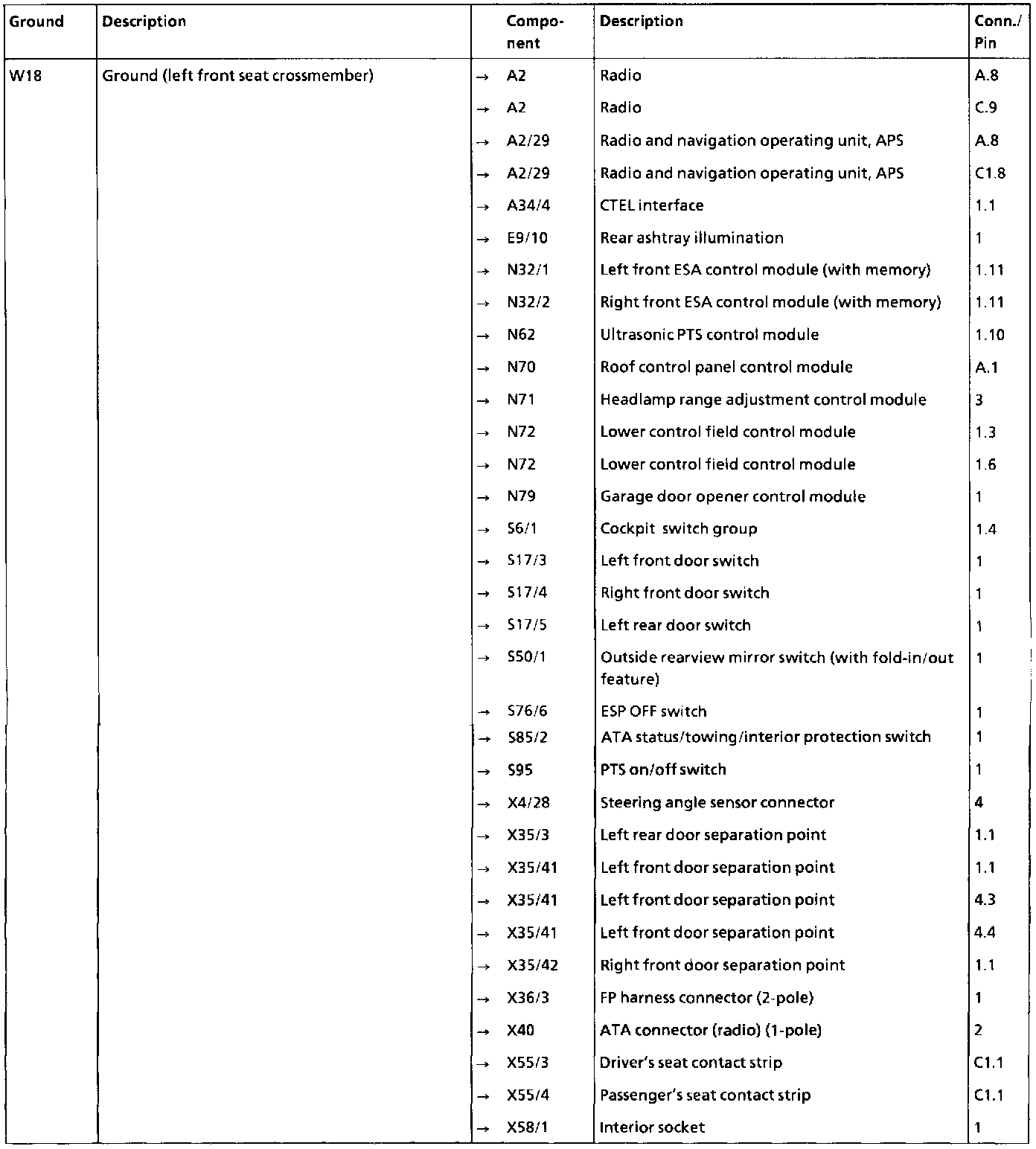 Arrangement and assignment of ground terminals, interior compartment (left)