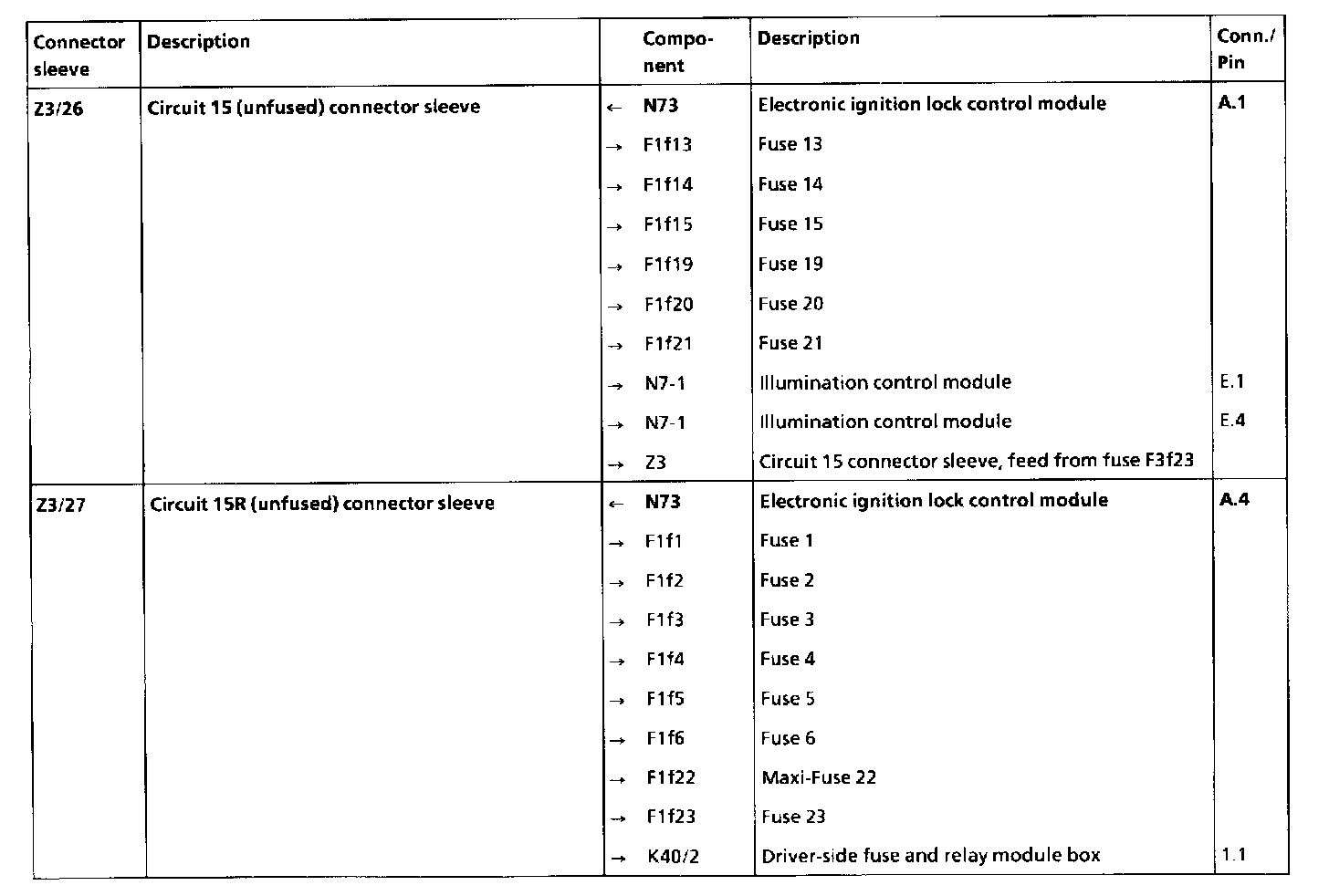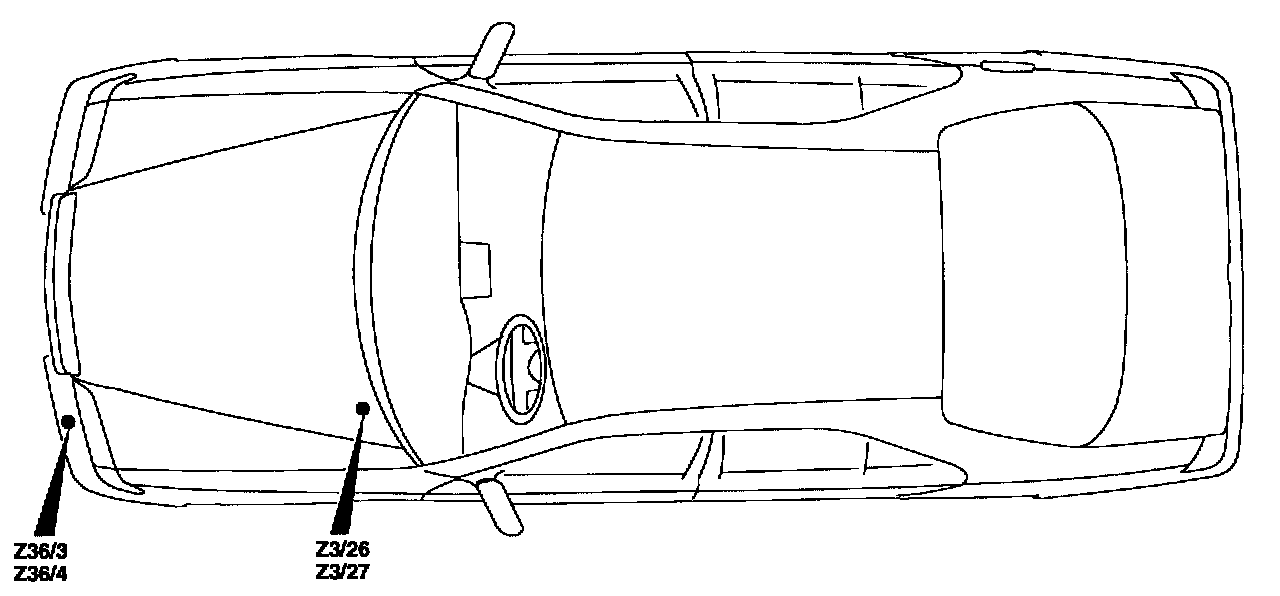 Arrangement and assignment of Z connectors sleeves (solder splices in wiring harness) - engine compartment (left)