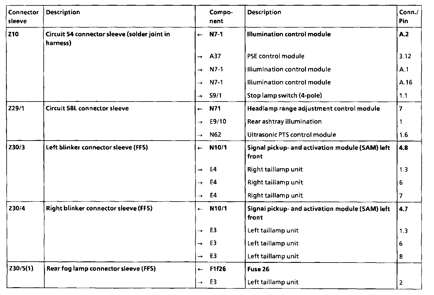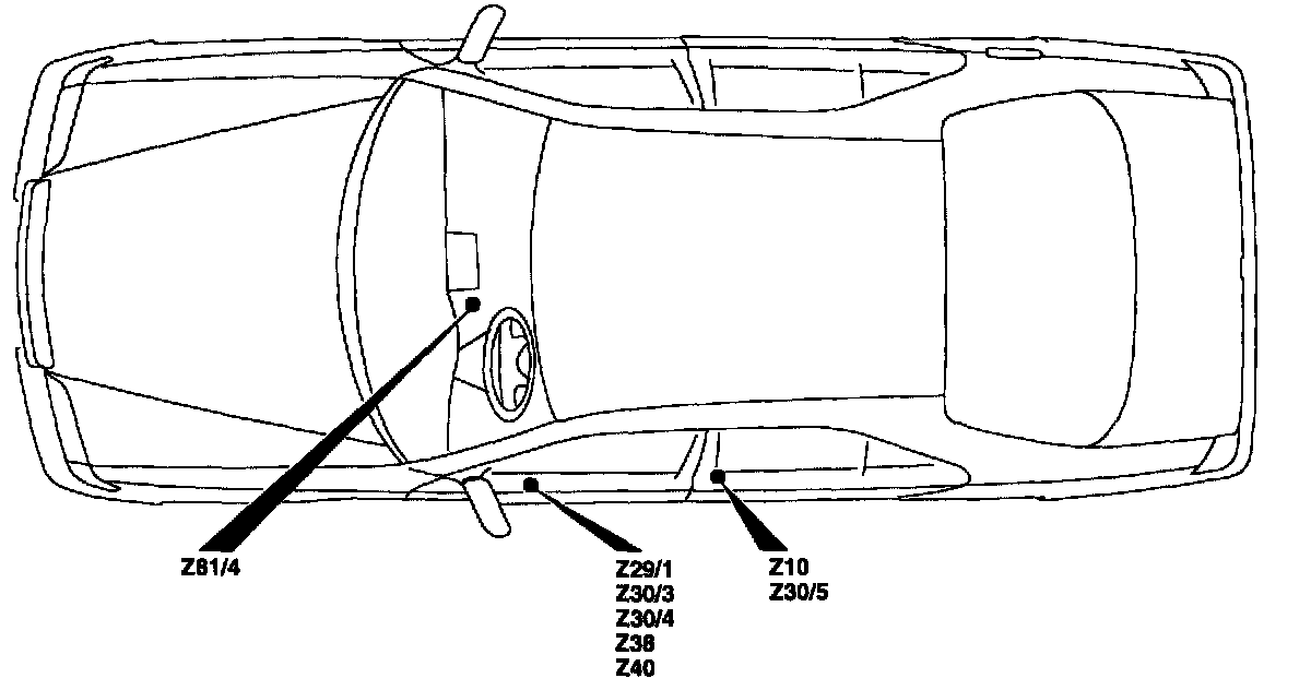 Arrangement and assignment of Z connectors sleeves (solder splices in wiring harness) - interior compartment (left)