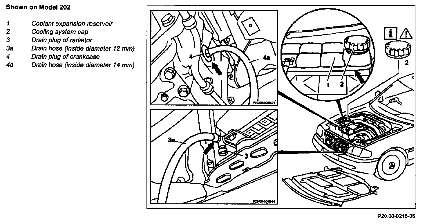 - Model 163: For draining coolant, remove coolant hose at the bottom of radiator or at coolant pump.