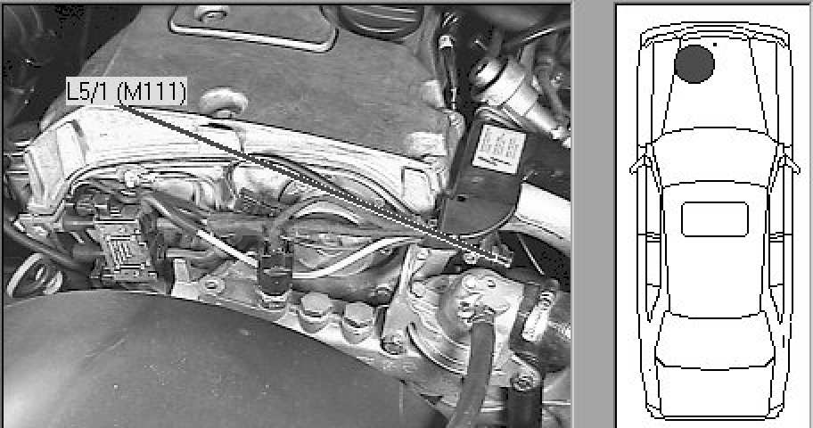 Engine compartment, left front of engine