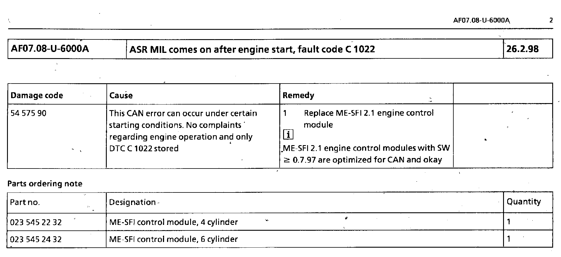 ASR MIL Comes On After Engine Start, Code C1022