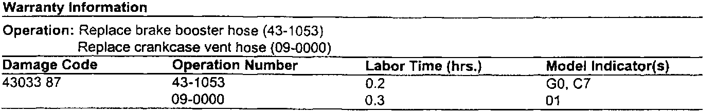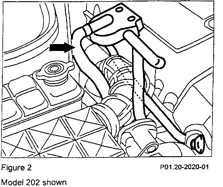 2. Replace the existing crankcase vent hose between the oil separator and air filter housing (Figure 2) with the modified crankcase vent hose (part number A 111 081 3382 for Model 170.447 and A 111 081 31 82 for Model 202.024) and connect it to the venturi on the brake booster hose.