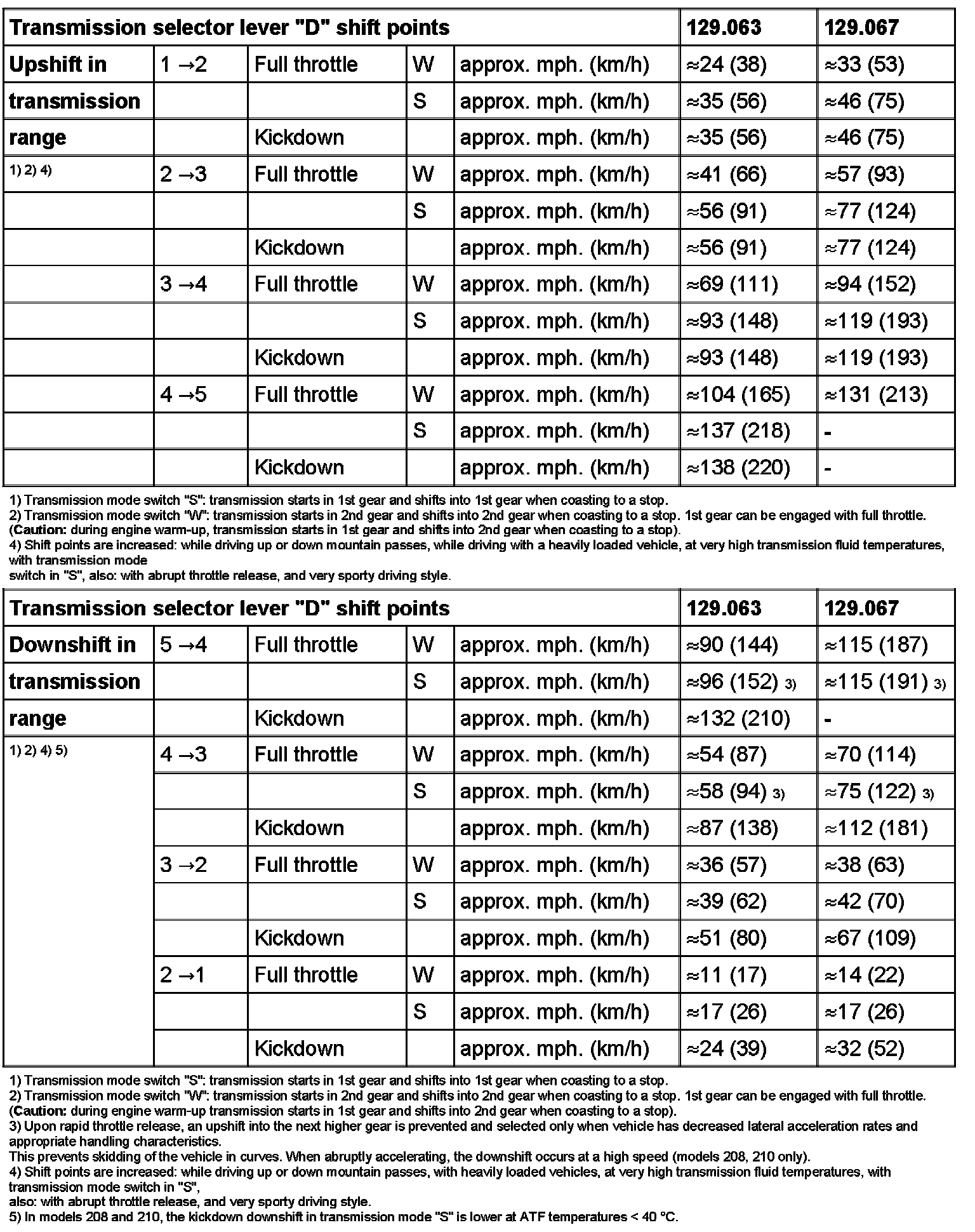 - Shift points are increased: While driving up or down mountain passes, with heavily loaded vehicles, at very high transmission fluid temperatures, with transmission mode switch in "S", also: with abrupt throttle release, and very sporty driving style.
