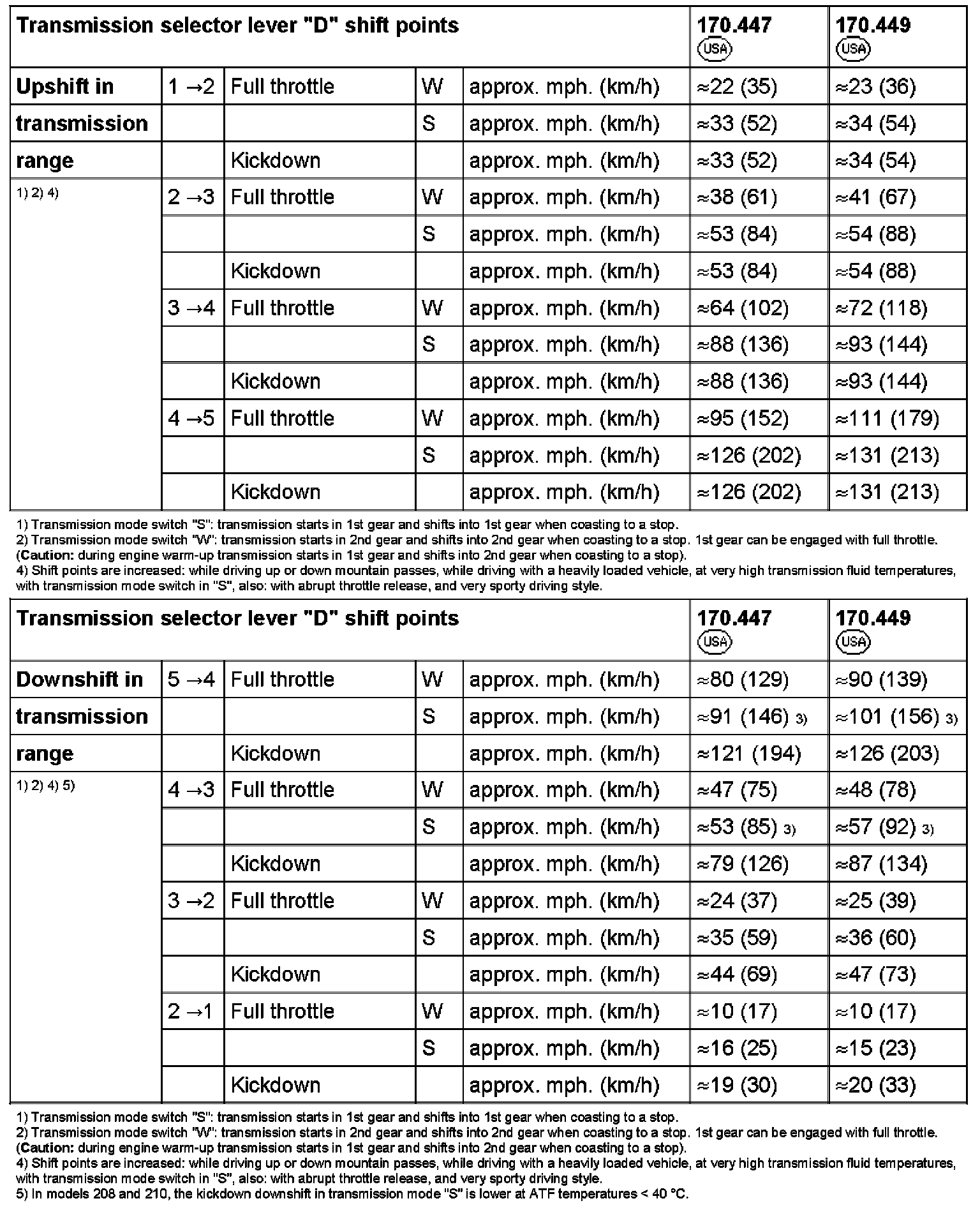 Note: Hints regarding "D" shift points for passenger vehicles follows: