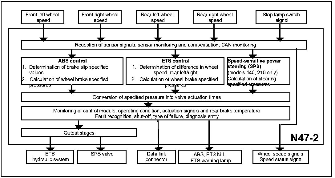 - Wheel speed output: The ETS/SPS control module supplies the current wheel speed of each wheel for systems which need a wheel speed signal.