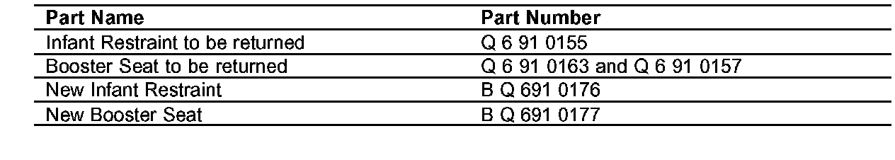 Recall - Infant Restraint/Booster Seat Exchange
