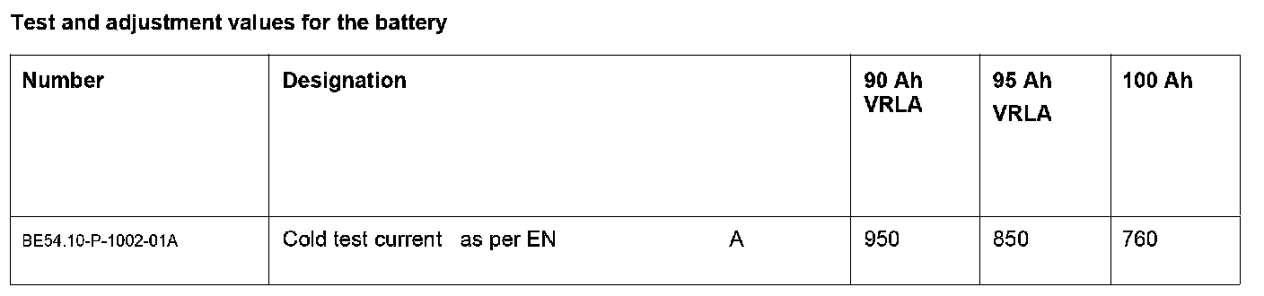 Test And Adjustment Values For The Battery: