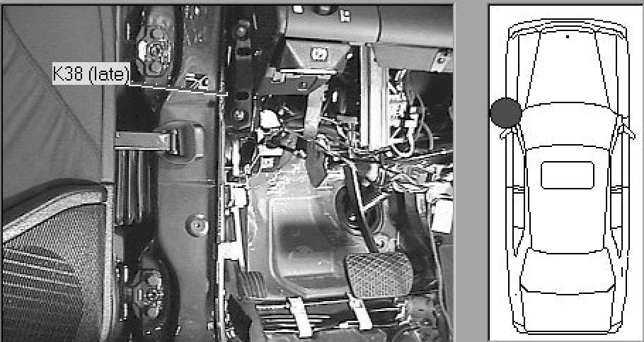 Hidden behind door jamb, towards engine compartment on interior wall, extending into fender cavity