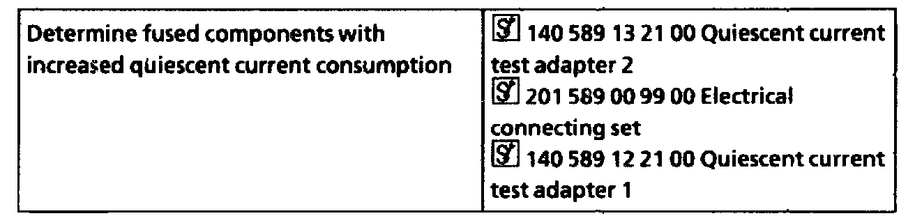 NOTE: If measured at the radio fuse or if the radio connector is separated It must be taken into consideration that the quiescent current increases by approx. 0.240 A (240 mA) when the radio is reconnected. Switching the radio on and then back off eliminates the increased quiescent current consumption.