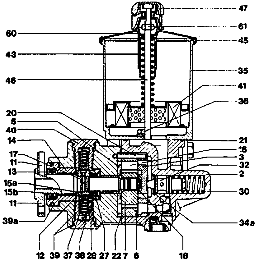 11. Check seals (39), replace if necessary. Take piston (37) and spring (38) out of the screw cartridge (40). Examine piston and piston track for signs of damage and wear. It must be possible to move the piston in the screw cartridge (40) easily and without it jamming. If this is not the case. replace the screw cartridge.